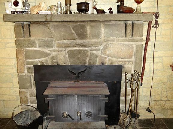 No community, no dues! Great get-away or starter home: 2 bedrooms, one bath, beautiful native stone fireplace with wood burning stove insert, on a full basement and 1.20 acres.