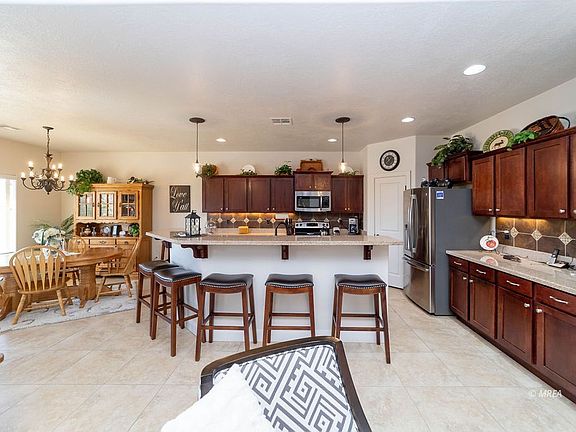 Must see 3 bedroom 2 bath located in Sierra Ridge Community. This lot is amazing, on the SE perimeter backing up to open space, views of mountain and valley. Gorgeous custom pool with tropical landscape makes you feel like your always on vacation. Inside you will enjoy spacious bedrooms, open concept with large walk around galley island, new undermount sink and faucet, granite countertops and stainless appliances. Need space for toys, then you will enjoy this spacious 3 car garage. Newer water softner, water heater and updated A/C system. Sold partially furnished. Low monthly HOA and easy access to public lands makes this a perfect location.