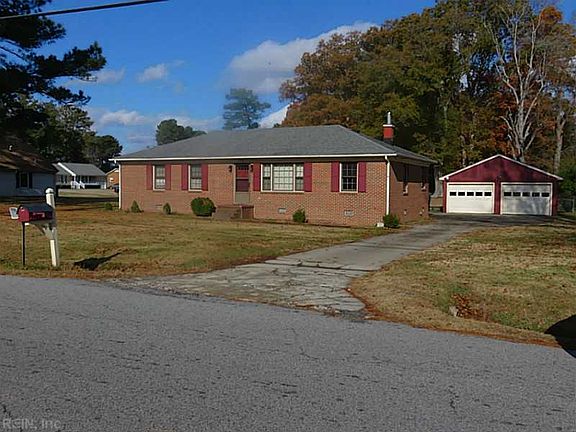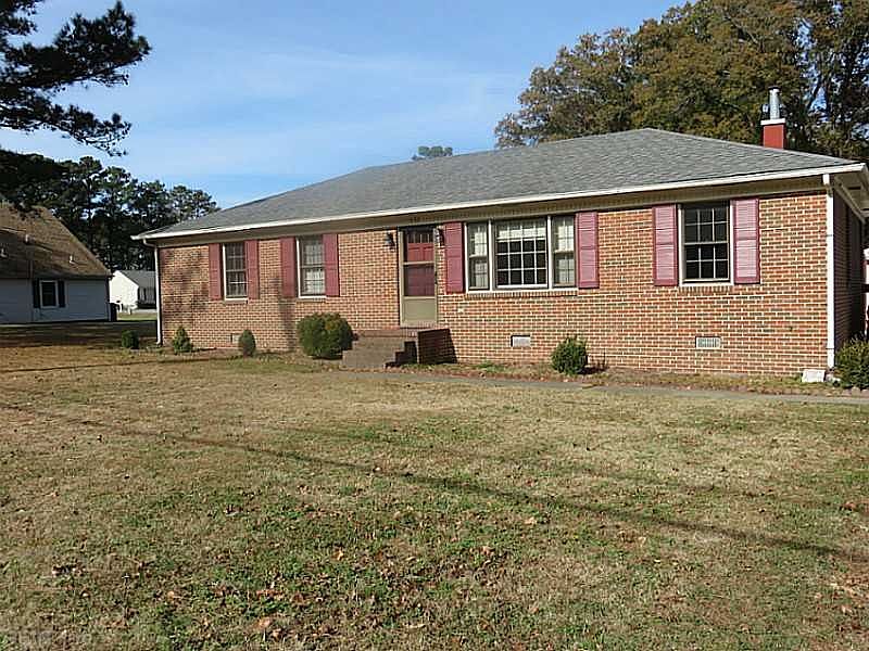 ALL BRICK RANCH ON 1/2 ACRE; 1500 SF, 3 BR, 1.5 BATH; HDWD FLRS UNDER CARPET, LIVING RM, DINING AREA, DEN/FAM RM, EAT-IN KITCHEN, SCREENED BACK PORCH, FABULOUS 2-CAR DET GARAGE/WORKSHOP AREA; HUGE FENCED BACKYARD, 5 MINUTES TO 58 BYPASS AND EASY ACCESS TO ALL TIDEWATER! REPAIRS/REMODELING ONGOING!