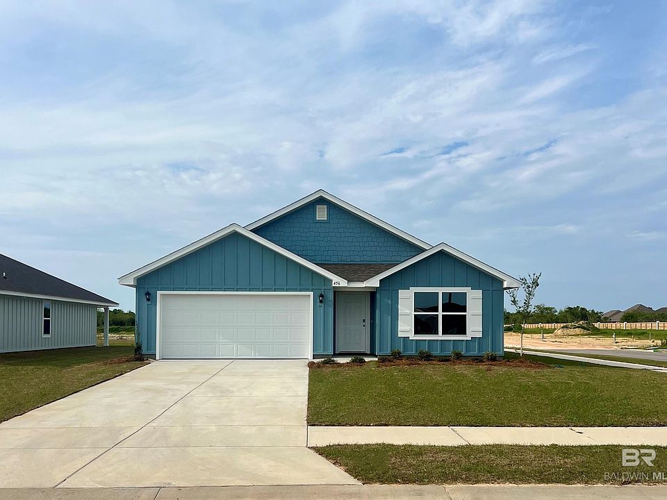 Explore Raley Farms Phase 2, conveniently situated on Country Rd. 8, just minutes from the Gulf Shores' white sandy beaches. Enjoy community perks such as a zero-entry swimming pool with a picturesque view of a pond surrounded by majestic oak trees. The sought-after CALI plan presents a 4-bedroom, 2-bath open concept floorplan. This home includes granite countertops, EVP snap lock flooring, and an LED lighting package throughout. The primary suite boasts a spacious attached bathroom featuring a double sink vanity, garden tub, 5’ walk-in shower, and an expansive walk-in closet. The second and third bedrooms are located at the front of the home near the second full bath, while the fourth bedroom is adjacent to bedrooms 2 and 3 near the garage entrance and the spacious laundry room. The Cali plan is complete with a generous covered back porch, perfect for enjoying sunsets or entertaining guests.***Pictures are of similar home and not necessarily of subject property, including interior and exterior colors, options, and finishes.***