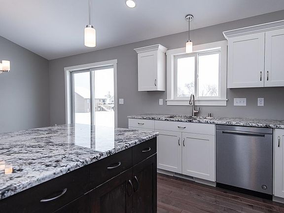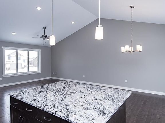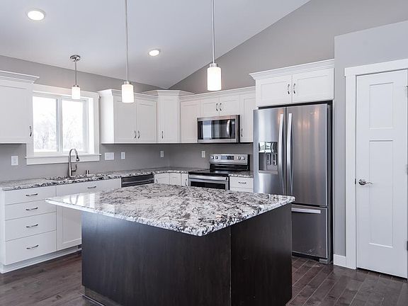 Something different! Fun & open design featuring private master suite with gorgeous bath & soaking tub, walk-in shower & double vanity & walk-incloset. Main floor laundry, birch kitchen cabinets, granite, vaulted ceilings. Large 3 car garage. Walk-out lower level on cul-de-sac lot.
