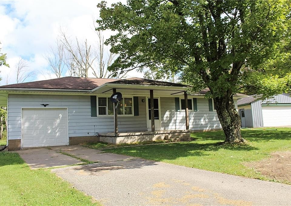 Check out this ranch style home in Greene Township nestled on almost three acres! Recent updates include new furnace and hot water tank in 2021. While in need of some cosmetic updating, this house has hardwood floors throughout (some under carpet). Applianced kitchen with formal dining room. Large covered front porch. Garage space galore with one car attached AND 24 x 24 detached pole barn w/concrete floor. Enjoy abundant wildlife in your own backyard while being just minutes from I-90 and Erie.