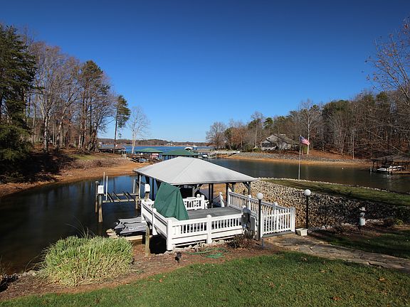 Builder's personal waterfront custom home with lush landscaping and spectacular views of the lake on .7 acres. This custom home features a main floor master suite with jacuzzi tub & separate shower and a large walk-in closet, 1 bedroom and an office/bedroom, one full bath and a powder room. The lower level features two bedrooms, a full bath, two large walk-in closets , a large family room, and oversized storage room. Gourmet kitchen, granite countertops, stone fireplace, sunroom and covered terrace off main level with amazing views, abundance of storage, finished basement, patio off lower level, dock w/boat house & separate boat slip with 2 boat lifts and jet ski lift.