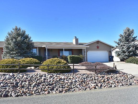 Beautiful views in the always desirable Superstition Hills of Prescott Valley! Lovely three-bedroom home with open kitchen, two living areas, and a large dining room perfect for entertaining or enjoying time with the family. Dual vanity in the master bathroom along with new tile in the shower and tub areas. Spacious 2nd and 3rd bedrooms, perfect for kids or guests. Oversized laundry room/mud room leads to an extra deep garage with workshop space! Sit on the front porch and take in the endless views or enjoy the low-maintenance backyard with covered patio, firepit and storage shed. Make this house your home in time to enjoy those perfect Northern Arizona summer evenings!