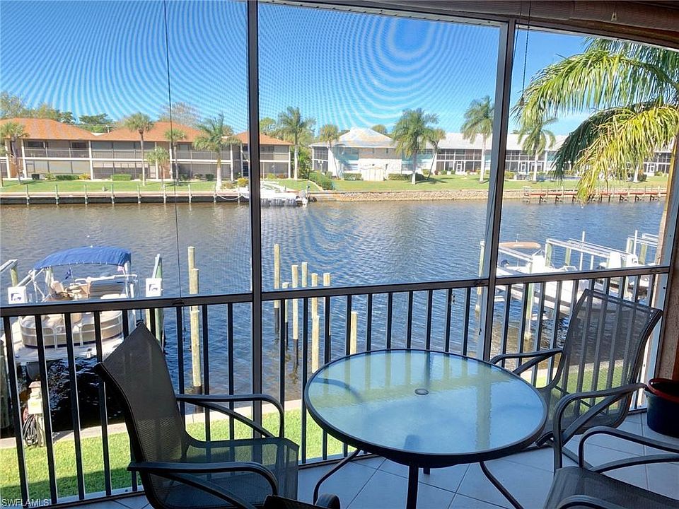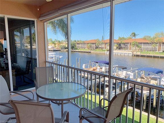 Beautifully maintained 2/2 Gulf Access Condo overlooking the 200' Rubicon Canal. Immaculately kept, only utilized 4 months out the year and never even rented out. This unit has vaulted ceilings, tiled living area and carpet located in the bedrooms. Kitchen offers granite counter tops, high end real wood cabinets and stainless steel appliances. Large Master Suite with crown molding, 9' ceilings, a walk-in closet and absolutely fantastic water views. Master bath offers dual sink granite vanity and plenty of linen storage. Washer and Dryer located in residence with a newer hot water heater installed. Spacious guest suite and guest bathroom is perfect for visitors. This highly desirable complex offers residents covered parking, brick paver pool deck, heated pool, spa and BBQ area all situated in one of the best areas Cape Coral has to offer. This move-in ready property will also give its new owner the right to the boat slip currently assigned and located next to the unit! Boat lift is also included (contact Listing Agent for more information.)