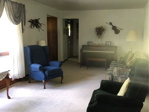 NOW BEING SOLD WITH ADDITIONAL, APPROX 1.5 ACRES LOT, TO THE EAST OF HOME!! Spacious and nicely maintained country ranch on approx 2.88 acres surrounded by amazing trees, A large family room off the back of home has a gas fireplace and elegant hardwoods throughout; it's the perfect place, to kick back, relax, read a book or watch your favorite shows. There are beautiful hardwood floors throughout most of the home (carpet covers some of them). An interior French drain was installed in basement and it is VERY dry! The basement is very large and could be finished very easily into more living space. New sidewalks and vinyl railing on the outside of home gives this property a classic look. There is a ramp on the side and also steps. A large, 3 bay detached garage with lots of storage space will hold your vehicles, tractors, mowers, gardening supplies and so much more! It's quite a find in this lovely country location!