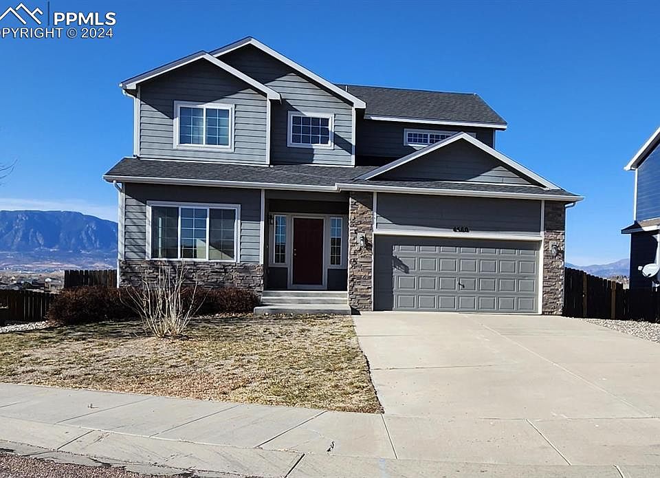 Spacious Two Story Home With Pikes Peak Views * Formal Living /Dining Room * Kitchen with Counter Bar, Pantry & All Appliances* Dining Area Walks Out To Wood Deck * Large Living Room * Primary Bedroom With 5 -Piece Bath & Walk In Closet * Additional Three Bedrooms, Full Bath & Laundry Room On Upper Level * Finished Walk Out Basement With Large Family Room , Bedroom & Bathroom * Mountain Views & Open Space Behind Fenced Backyard & Refrigerator , Washer & Dryer Included * Central A/C * Sprinkler System * Sump Pump * 3 Car Tandem Garage