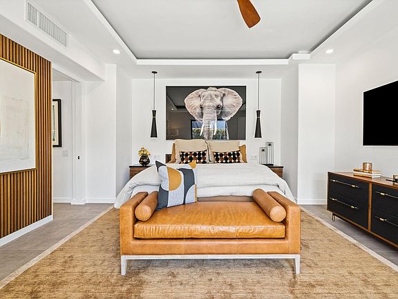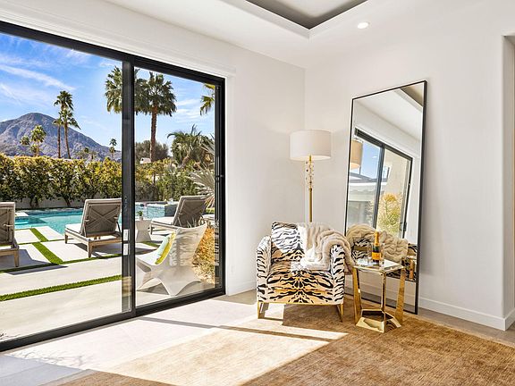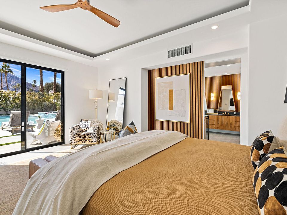 With architectural elements firmly rooted in '60s desert modernism, this one of a kind newly renovated Indian Wells resort incorporates the bold shapes and dramatic volumes of the late mid-century. Towering glass windows fill the living room with sunlight plus art walls, soaring ceilings and sweeping views. The teak paneled Thermador kitchen and adjacent den overlook the living room, showcasing the grand scale of the residence. Fully renovated inside & out in 2022, all interior finishes have been updated with a highly sophisticated selection of materials, yet a casual, open and comfortable style of living is preserved. The front and rear grounds are freshly landscaped and very private, featuring a wealth of mature desert succulents and a distinctively glamorous new pool and stunning new spa for entertaining. The primary bedroom suite and it's lavishly appointed spa bathroom both open to expansive mountain views and direct access to the pool and outdoor shower. Included are 4 bedrooms (one presented as office/den), 4 full baths, custom made teak cabinetry and large closets throughout, a laundry room and separate walk-in pantry, indoor and outdoor fireplaces, an outdoor serving bar with bbq grille, a primary-adjacent outdoor shower, an oversized 2.5 car garage and dedicated outdoor storage. On one of the neighborhood's premier streets next to Indian Wells and El Dorado Country Clubs, this stunning property enjoys space, privacy, and breathtaking views. No smoking and no pets allowed. Tenant pays for gas and final cleaning fee. Lease term to be 30 days or longer, prefer longer than one month. A non refundable $10,000 to remove the home from the active listing status.