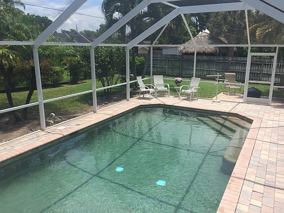 Bring your offers to this lovely 3 bedroom / 2 bath home with enclosed lanai, outside bar, pool and spa. This home sits on a beautifully landscaped lawn and features a bright and spacious floor-plan, wood and tile flooring through out, vaulted ceilings, skylight, a spacious master bedroom with walk-in closet, and a walk-in pantry / storage closet right off the garage. The backyard is totally fenced in offering both privacy and security for children and pets. There is also a 2 car attached garage. This home is in a great section of Golden Gate City, on a quiet street and close to shopping centers, schools and restaurants. The house is move-in ready. Freshly painted and squeaky clean. Call Mary at (239) 601-8405 to schedule your private viewing.