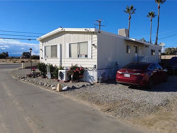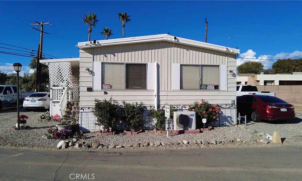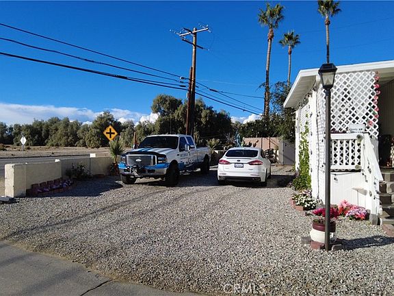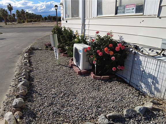 This is an all-age park. This mobile home features a covered patio, nice curb appeal, new flooring and new kitchen cabinets, separate dining area, back door that leads to side of the mobile home, mini spilter, security system, shed, washer and dryer area, with hookup and much more. There is plenty of room for parking, on both sides of the home, for cars, trucks and RV's. Enjoy the privacy in your covered patio, while enjoying the views of downtown 29 Palms. Motivated to sell. Land fee is only $650/per month. Must qualify with park manager to live in the mobile home park. Sold as-is. So hurry now. This is a must see. This will not last long.
