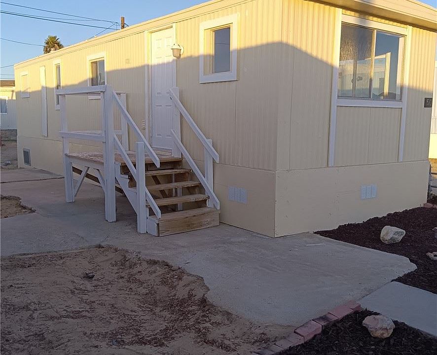 HIGHLY MOTIVATED SELLER! I HAVE CLEAR TITLE OF THE MOBILE HOME! MAKE YOUR BEST OFFER! MOVE-IN-READY! Wide one bedroom and one full bath, Twentynine Palms, CA. This mobile home features new roof coating, new walls, new paint, new flooring throughout the house, new kitchen cabinets, new countertop, new plumbing in the kitchen and bathroom and new doors. There are brand new smoke and carbon detectors, in each room. There's a brown artificial turf rug on the porch. Mini splitters will be installed at full asking. Space fee is only $650.00 a month. Very easy process to get approved by the property manager. First come, first serve. Must see to appreciate. Call for any questions or a private showing.Everything in the house is brand new. You won't have to fix anything. You have a nice lot size to park 3 cars in the front and have your own privacy. Inside the house you have a beautiful view of downtown 29 Palms. The views are amazing, especially at night. Plenty of room for parking. You have two entry ways to get in and out of the house. The park is nice and peaceful. You will not find any other mobile home that is move-in-ready, at this price range. Must see.