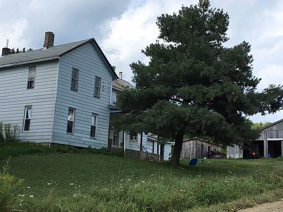Great country property with new barn and extra building. Amish owed so no inside bathroom now. Wiring was not removed from the structure. Drilled well and septic system still there. Front and back porch. 4th bedroom is a walk through to get to 3rd bedroom. Room upstairs and on first floor for baths. Woodshed attached at back off kitchen. Now being heated by wood stove(tenants) and there is no furnace. Attached 2 car garage now being used as laundry area but doors still there. Occupied by tenants so please give 48 hour notice to show. Regular financing will not be available for this home