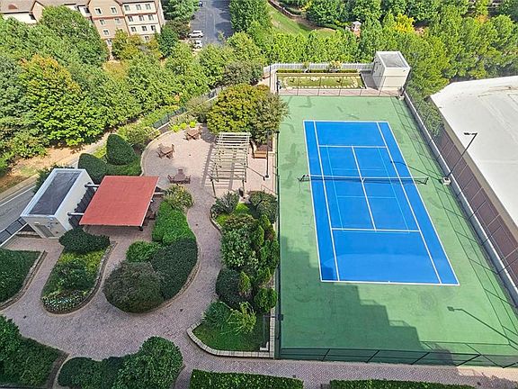 Luxury High-Rise Living in the Heart of Dunwoody with Rental Permit! Boasting a 10-foot ceiling and an open-concept design, this home offers breathtaking panoramic views and an abundance of natural light. The kitchen is outfitted with premium stainless steel appliances, granite countertops, perfect for entertaining or quiet nights in. The living area flows seamlessly into the private balcony, creating a sophisticated yet comfortable environment to take in the view. The bedroom suite boasts a spa-inspired bathroom with dual vanities and a large soaking tub/shower. Additional highlights include freshly painted, new hardwood flooring, and in-unit laundry. No stairs! Residents enjoy an unmatched array of resort-style amenities, including a state-of-the-art fitness center, sparkling pool, club lounge, concierge service, and secure deeded covered parking, virtual golf simulator, tennis, and pickleball court! Fabulous views from Sky Lounge on the 27th floor! Just steps from premier shopping, fine dining, and MARTA access, this condominium offers the perfect balance of luxury and lifestyle in the vibrant Dunwoody community. Don’t miss your chance to elevate your everyday living—schedule your private tour today.