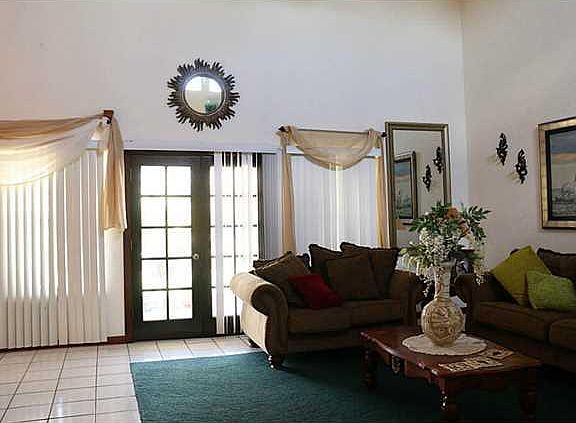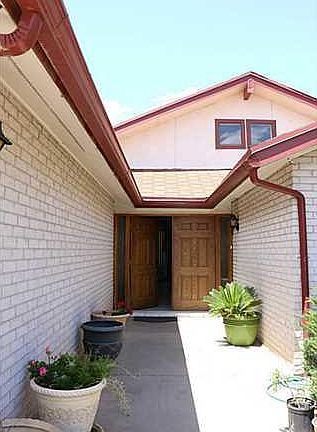 Classic ranch-style home on a generous lot. Cathedral ceilings bring a feeling of spaciousness. Large open plan living & dining rooms have lots of natural light. Den & informal dining spaces off the kitchen. Gas range & breakfast bar in kitchen with a cute coffee bar area, too. 3 good-sized bedrooms. 2 full & 1 3/4 baths. Covered patio with 2 ceiling fans flows into open patio space. Elevated planters w/lush vegetation. Tall privacy walls in back