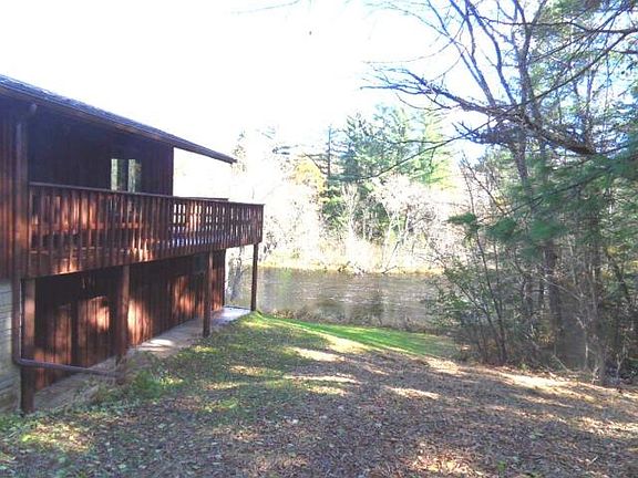 Spacious Home on the Pelican River with spectacular views and the tranquil sounds of the rapids. This home sits on a private 5.97 Acre lot with 734' of river frontage with beautiful tree cover. Some features include a recently remodeled kitchen with granite countertops, spacious dining room, bright living room with patio doors leading to a 12x24 deck and great views of the river, master bedroom w/ 1/2 bath, 2 additional good sized bedrooms, and a large full bath with soaking tub. There is birch flooring in kitchen, dining room, and hallway. The lower level is clean and dry and has many possible uses with access to garage. There is an outdoor woodburner with it's own shed and an additional 12x20 shed for storage. Move in Ready.