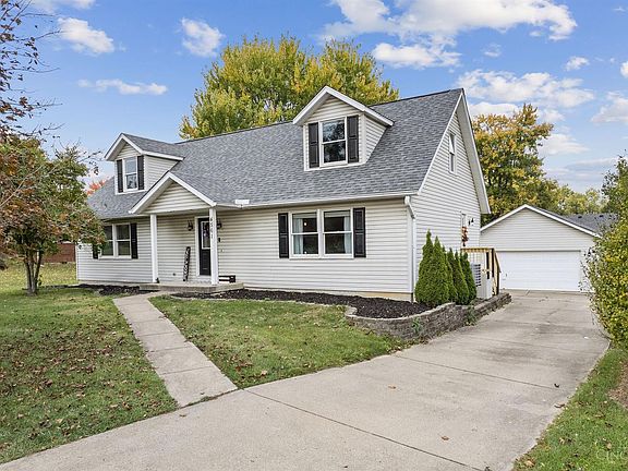 Check out this beautiful cape cod style home with almost new everything! Close proximity to all the amenities eastgate has to offer and more! Great detached garage with a door on the front and back to pull vehicles or projects in and out with ease. Plenty of storage as well with a fully poured basement. Enjoy this no HOA living!