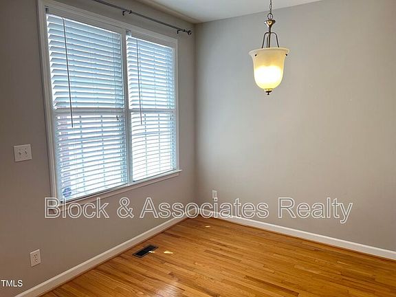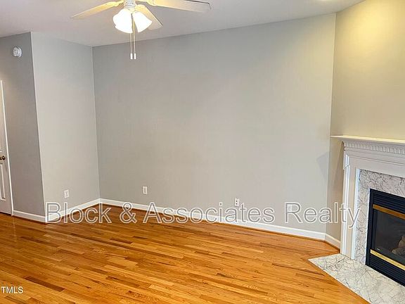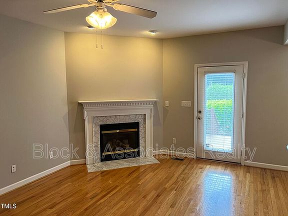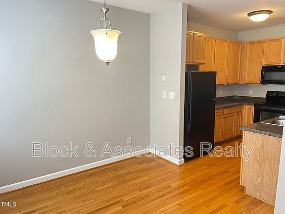 Great townhome in convenient location. Downstairs has hardwoods throughout. Large family room w/gas fireplace, separate eating area, and kitchen w/all appliances. Upstairs has large master suite with walk in closet, dual vanity, separate tub and walk in shower. Second bedroom also has its own bath. One car garage. Private back deck perfect for relaxing. Community pool included. Convenient to shopping, dining, NC State, and Lake Johnson. Plenty of guest parking behind home. Sorry, No Pets. Welcome Home!