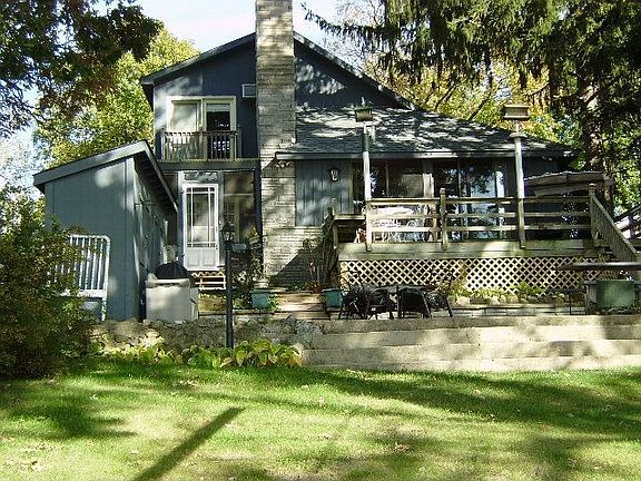 Beautiful year round 4 bdrm, 2 bath home on all sports lake with a large deck for entertaining. Detached heated garage with large storage above. There is a lot across the street to accomodate company parking. Awesome sunsets and views of the lake.