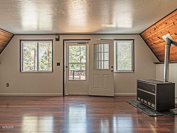 Bring all offers, this little gem is a home perfect for Mountain Living. Main bedroom down stairs, loft/bedroom upstairs. Newer laminate flooring in living area, Natural Gas with gas heater in living area plus home has forced air for heat as well. Window units keep the home cool. Newer roof, beautiful yard with open space across the street giving you the feel of less neighbors and more space. Architecture of this home is very unique is a Chalet, which means the sides of the roof do not touch the ground as well as Colorado Style, which mean there is a deep over hang at the front and back of home. Large deck in front allows for sitting back and relaxing on those cool Summer evenings. Come take a look and purchase your piece of the White Mountains. Call for your private showing.
