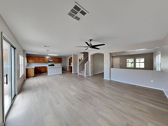 Welcome to this beautifully updated 3-bedroom, 2.5-bath, two-story home, where modern elegance meets comfort. Step inside to discover freshly painted interiors and brand-new flooring throughout, enhancing the home's fresh, inviting atmosphere. The kitchen is a standout feature, boasting stunning quartz countertops, a central island, and sleek stainless steel appliances. A new window in the upstairs bedroom brings in abundant natural light, while new hardware, lighting fixtures, and ceiling fans add contemporary touches throughout the home. This residence seamlessly blends style and functionality, making it the perfect place to call home.