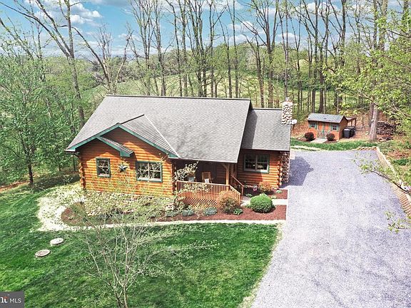 Wooded tranquility! Log home nestled on a secluded 1 acre wooded lot within a reasonable commute to MD and a short drive to Codorus State Park. This home features; 3 bed rooms, 2.5 baths, a wood burning fireplace to cuddle up by on those chilly days, a covered front porch & a deck perfect for early morning coffee while enjoying nature, freshly landscaped, comes complete with all appliances, 1st floor laundry, a storage shed, a full basement with plenty storage space, a finished family room with a propane fireplace, a bar, a half bath and level access to a new stamped concrete patio.