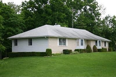 Everything is already here. Three or Four bedroom brick ranch with huge master suite, walk-in closet, also seperate garden tub and shower, two additional first floor bedrooms, one with a bay window. The open living area combines the living room with a brick fireplace, kitchen with bar area, and formal dining room with bay window and built-ins. This whole area has oak hardwood flooring. The finished walk-out basement has an extra office/bedroom, with attached storage room, full bath, rec room and additional family room with double-sided fireplace. From either floor's patio, you can access the 2.7 picturesque acres with a stream, tons of Black Walnut trees, gorgeous views of this country setting. What a great find.