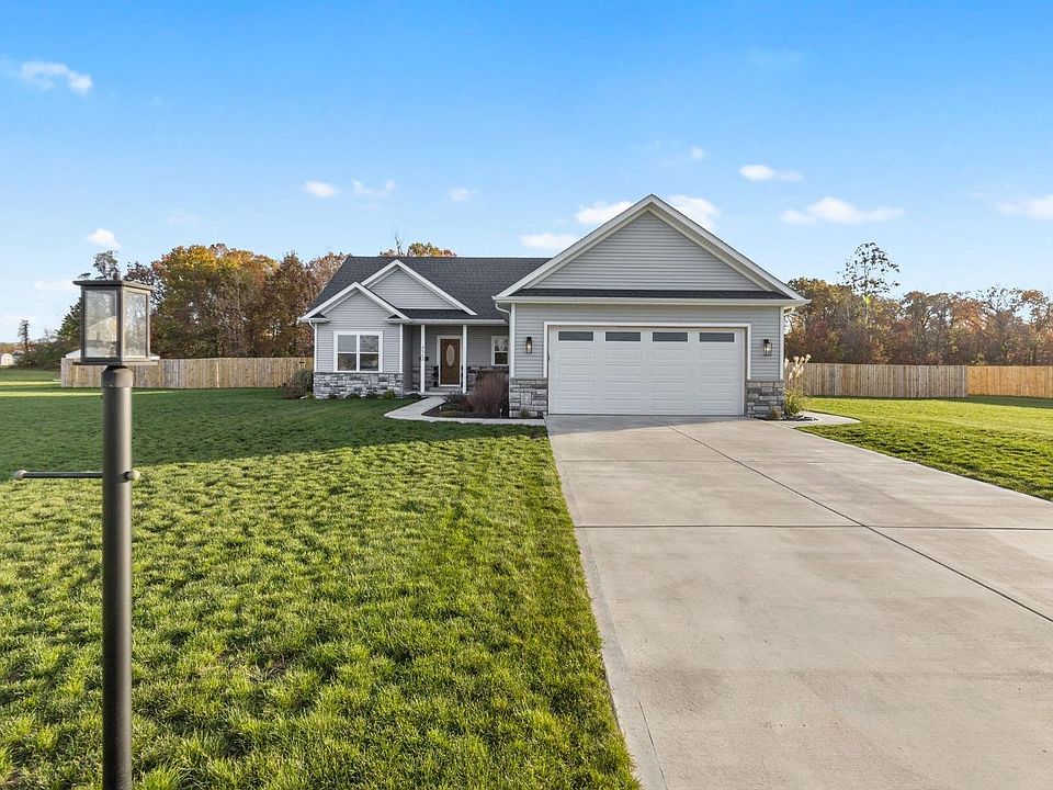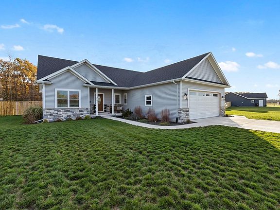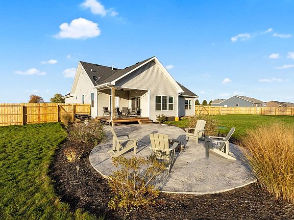 This beautiful ranch style home is beaming with natural light! From the moment you walk into the open concept floor plan, you will love the openness & brightness offered by the southern facing windows! The living room boasts an accent wall with custom trim, stone accents and built ins. Entertaining is a breeze with the open dining and kitchen area. Complete with a snack bar and access to the covered porch for the BBQ's! A split floor plan puts bedrooms 2 &3 and their shared full bath on one end of the home. while the primary suite is tucked away on the opposite end. The primary suite is very spacious and offers a huge walk in closet, gorgeous bathroom and outside access! In to outdoor living? You're in luck... this backyard not only offers the covered porch, but a stamped concrete patio is home to a firepit! The huge back yard is fully fenced and offers a wooded back drop. Immaculate, move in ready and just a short distance to the schools and shopping!