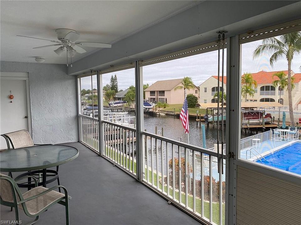 ATTENTION BOATERS! Need a place to keep your boat? THIS IS A PERFECT 2 BEDROOM, 2 BATH CONDO plus extra room for storage or an office, that includes a deeded PRIVATE BOAT DOCK for your boat! One bridge to the river gets you out within approx. 10 min! As you walk in the entrance, the beautiful LAMINATED FLOORS catch your attention and then you will be drawn out the wide open sliding glass pocket doors from the living room & master bedroom out to your HUGE SCREENED IN LANAI overlooking HEATED POOL and CANAL with your own staircase down to the POOL! Enjoy cooking up a treat in your kitchen with all STAINLESS STEEL APPLIANCES, plenty of cabinets & a pantry in the kitchen. Sit down with your favorite drink out on the lanai and enjoy the view. Great quiet neighborhood with lovely neighbors when they are here in season. You are conveniently located near shops, restaurants in your South Cape area which includes Four Freedoms Park, Bimini Basin & lots of places to walk to or ride your bike! The Yacht Club is minutes away to enjoy a delicious meal at The Boat House, sunset and Cape Coral's only beach! You are going to love it here. Call for your private tour as this will go quickly!