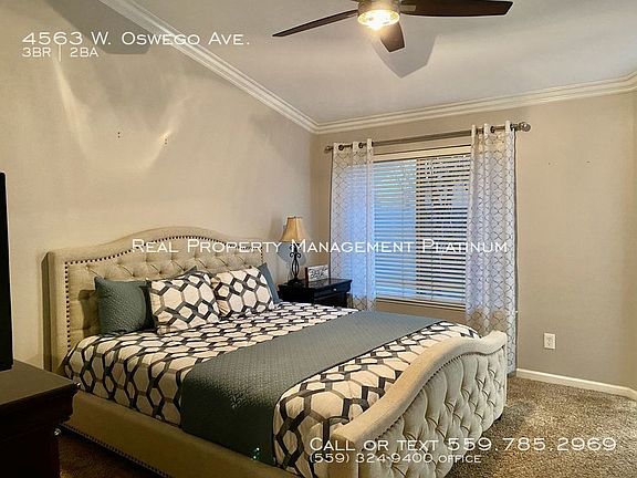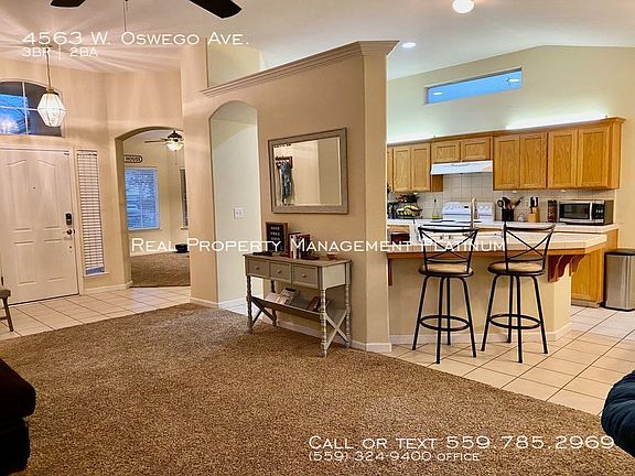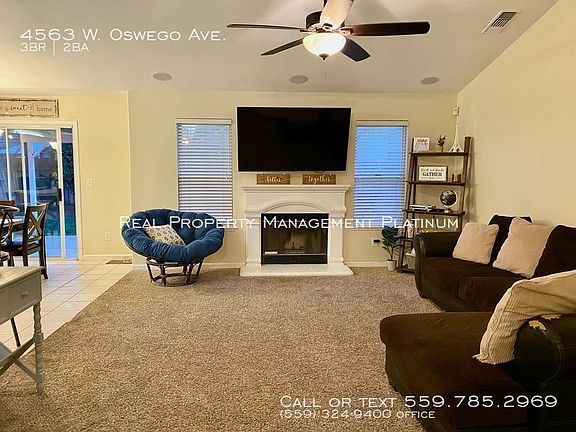 Bullard & Fig Garden cross streets. 3 bed / 2 bath, 1703 sq. ft., built in 1999. Kitchen has while tile counters, vaulted ceiling, breakfast bar, electric range/oven, dishwasher, and opens to the dining area and great room with fireplace. Front living room can be a second living space. Primary bedroom has walk in closet. Primary bathroom has quartz counters, glass shower, separate soaking tub, dual vanity areas and a spa atmosphere. Two additional bedrooms. Ceiling fans throughout. Hall bath has a single vanity with tub/shower. Interior laundry with hook ups, leads to the attached 2 car garage. Backyard has a covered patio and lawn area. Yard care provided. Pet considered with additional deposit and pet rent. Credit score above 650 required to qualify. Renter's insurance is required. DRE# 01901101. All information is deemed reliable but not guaranteed and is subject to change. Non Smoking. Renters Insurance Required