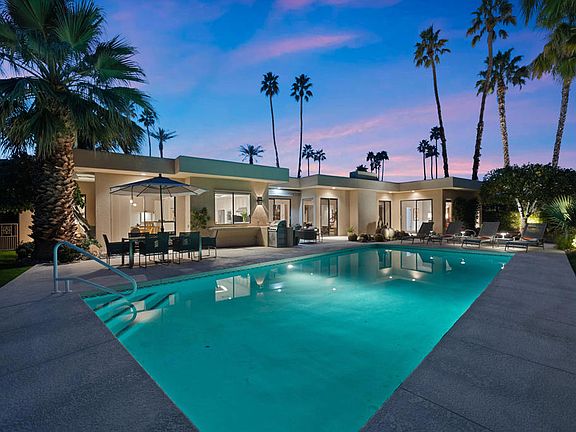Discover your ultimate desert sanctuary in this light-filled, airy retreat boasting stunning south views of Mt. Eisenhower. Designed for both relaxation and seamless entertaining, this 3-bedroom, 2.5-bath home presents a perfect balance of indoor elegance and outdoor ambiance. Step through the front gate into a beautifully landscaped courtyard showcasing desert cacti, a magnificent ocotillo, river rock, and artfully placed concrete pads. The striking bronze double-door opens into an expansive living/dining room featuring a marble fireplace and fabulous pool and mountain views. An outdoor living area, with a fire pit and retractable awning, is the perfect spot for cozy evenings by the fire. The re-designed family room, casual dining area, sit-down bar, and kitchen combine seamlessly to create the perfect space for hosting memorable gatherings. The spacious primary suite is a true haven, complete with direct pool access and a breathtaking south mountain view. Two comfortable guest bedrooms, one of which has a picturesque view of the front courtyard, share a common bath. Situated on a sought-after street, near Eldorado Country Club and all that Indian Wells has to offer, this desert oasis is your invitation to embrace a lifestyle of tranquility and outdoor enjoyment.