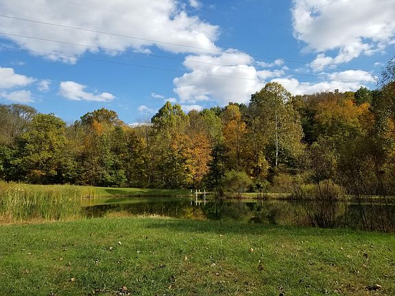 48.365 wooded acres provides great hunting, trail system and recreation in Coshocton, Ohio. This property features a beautiful 3 bedroom ranch style home with stainless appliances and all the appliances will stay including refrigerator, dishwasher, oven/range, microwave, washer & dryer. This home offers a full walkout finished basement. The home main floor is 1,120 Sq. Ft. and the finished basement is 1,120 Sq. Ft. The 2 car garage can be accessed from the kitchen. There is a 24' x 20' pole building, and a 16' x 16' two stalls also fenced. The metal roof on this 3 bedroom home is only 5 years old. This property has a small & cozy camping cabin that overlooks the 1 acre stocked pond. This property has FREE GAS and, all mineral rights owned by the sellers will be transferred to the new owner