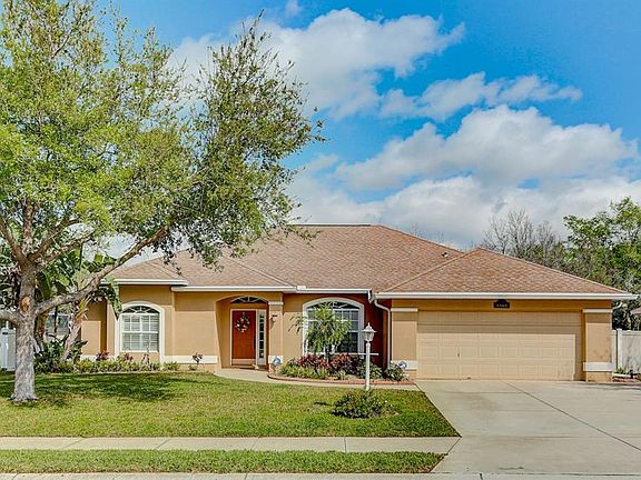 Tucked in the back of Sugar Mill Lakes you will find this spectacular 4-bedroom pool home waiting for you to discover. As you pull up, notice the beautiful landscaping complete with a colorful Bottle Brush tree! The oversized driveway leaves plenty of room for your guests! As you walk through the front door, your eyes are drawn straight back to the screened lanai, pool and spa. The laminate flooring takes you through the living and dining room right into the kitchen and family room where you will find tile floors and a wood burning fireplace, perfect for those cool winter days. The kitchen has been updated with wood cabinetry, solid surface countertops and new stainless appliances including a gas range and dual ice makers in the refrigerator! The master suite features sliding doors to the lanai, laminate flooring and a tranquil master bath. On the other side of the home you will find the three guest bedrooms and an additional bath. As you take in the features of this home, notice that all the flooring is either tile or laminate (no carpet to worry about), there is a whole house speaker system and a Nest thermostat. Outside you will find the heated pool and spa surrounded by a fenced yard for added privacy. The covered lanai provides plenty of space to relax out of the sun. There is a gas connection so you can easily add your outdoor kitchen (the LP tank is owned)! This home features a new AC, new Water Heater, new refrigerator, newer washer and dryer and a newer Pool Pump. There is a gas stub ready for you to add a generator and outdoor kitchen (the electrical panel has been installed in the garage to accommodate a generator)! Be prepared to be wowed!