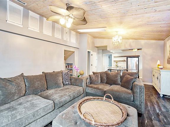 Modern cottage style living in a beautifully updated three bedroom home. This home has cathedral wooden ceilings.The open floor plan boasts a farm house sink in kitchen with light gray granite counter tops and tile back splash. Large upstairs loft perfect for media room or studio. Relax in the tropical landscaped fenced yard with pergola canopy for outdoor dining. Yard is fenced and private, great for visiting around a fire pit. Outdoor shower for rinsing after the beach. Wrap around porch surrounded by landscaping for a feeling of serenity. You will feel as if you are living in the country while living in the heart of Sarasota with dining, night life and beaches. Only 10 miles to number one rated beach, Siesta Key.