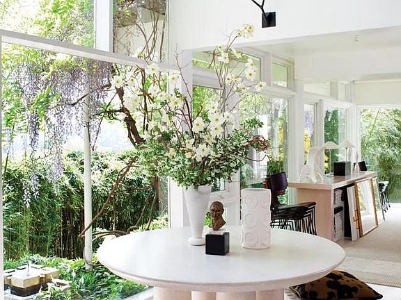 "Treehouse Aerie" behind discrete facade Built in 1956. by well known architect Thomas Wright in the style of Mies Van der Rohe and more recently renovated by Gary Lovejoy Associates. Just west of Georgetown in the lower Foxhall/Palisades neighborhood is this stunning hillside mid-century w/vast expanses of glass that integrate the structure with its natural surroundings and open views across to Virginia & seasonal Monument view. Upper and lower terraces, custom lighting. The home’s streamlined architectural style and open floor plan dovetail perfectly with that aesthetic. The abundance of glass and natural light makes the 2,300-square-foot house feel larger than it is. Large & private lot!