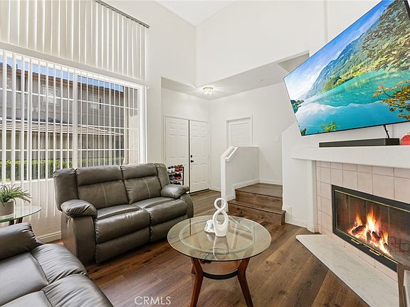 Welcome to this elegant, Award Winning Architects William Hezmalhalch Design & Award Winning Landscape Architects Frank Radmacher Associates. townhome in the most sought-after gated community of Montecito Villas in Orange County La Palma! This home features 3 bedrooms and 2.5 bathrooms with tasteful upgrades throughout the unit. Step inside, and you’re greeted with a bright and airy living room equipped with a 14ft high ceiling, a large ceiling-to-floor window, and a fireplace. The open floor plan on the second level creates a perfect flow between the great room and the fully appointed kitchen complete with built-in stainless-steel appliances, plenty of cabinets for storage space, and an island with quartz countertops. A powder room is conveniently located next to the stairs. All three large bedrooms are upstairs for privacy. The master suite features dual sink vanities and a spacious walking closet. The other two bedrooms share a spacious bathroom in the hallway. A laundry closet with a stackable washer and dryer completed the top floor. Plenty of natural light throughout the unit. 2 parking spaces, direct access to the attached 1-car garage, and 1 assigned outdoor parking right next to the unit. Montecito Villas offers resort-like amenities including a spa and pool, controlled access, beautiful landscaping, ground maintenance, and plenty of guest parking. Centrally located, close to shops, parks, schools, and easy freeway access. Come for a tour and make this home yours!