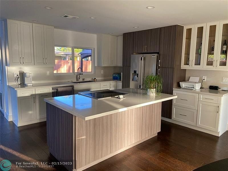 You will Fall In Love With This Home Corner lot in North Gardens, close to the Beach Wilton Manors I-95. A great corporate rental. . The open concept truly centers around the kitchen yet there's abundant space to create multiple zones while making the entire space feel cohesive & harmonious. New - Custom Cabinetry & Quartz Countertops, Professional Appliances, Distressed Hardwood Flooring, Custom Lighting, Interior Doors & Trim, Exterior Impact Doors & Windows. Additional room can be used as a third bedroom or office. Above ground pool huge yard for plenty of entertainment. Plenty of parking for the entire family. Great location close to everything Rent includes yard maintenance and pool service. Will allow pets on a case by case basis.