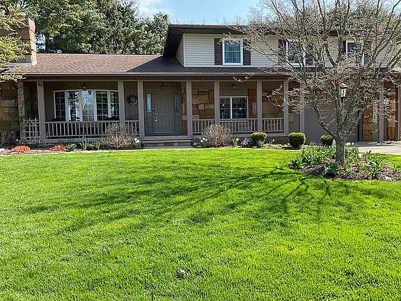 House plus separate 3600 square foot building on 2 acres near the heart of Amish country in Northeastern Ohio. Custom built multi-level home featuring Briar Hill stone, rough sawn cedar& vinyl siding. Home has hot water heat powered by Natural Gas & Quadrafire wood burner insert in the N. Carolina White Mt. Stone fireplace in living room which features cedar beams & Amish- built bookcases. Sliding glass doors open to a private covered patio. Dinning room has Amish-built China cabinet & sliding glass doors opening to dual level deck with newer composite flooring-very private with mature pine trees for lots of shade. Kitchen features new vinyl flooring, new KitchenAid dishwasher 36" Thermador 5 burner stainless cooktop & double oven. Handy 5 seat-eat in bar. 5 steps down from kitchen is a cozy den, 1/2 bath & laundry. In-home office has Mullet desk and bookshelves. Three good sized bedrooms are up stairs along with a full size bath w/soaker tub; master suite with 3 closets including a walk-in plus an additional linen closet. Off the master is a full bath with large walk-in shower. A bonus room directly across the hall would make a perfect nursery or sewing room. The finished basement features 10 foot ceilings, Berber carpet plus some linoleum. Lots of storage including separate enclosed root cellar, furnace room and large closet with water softener, well pressure tank, water filter and newer on-demand water heater. Attached garage features new epoxy flooring & large enclosed storage room. The 3600 sq ft building offers lots of possibilities: the 600 sq ft shop is dust collector-ready & was used as a wood working shop. It is fully insulated & drywalled. In floor hot water heat is powered by NG. The 1600 sq ft office was our Chiropractic Office & also has in floor hot water heat backed up by it's own electric Heat pump & central air. Could easily be converted into a B&B or in-law suite. This building also has a 24x28 sq ft two car garage.