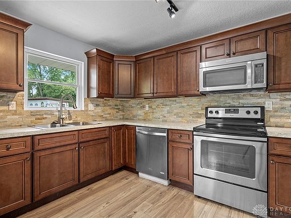 Welcome to beautifully renovated 3-bed, 1.5-bath brick ranch on the Kettering/Belmont line. It features a stunning custom kitchen with high-end cabinetry and modern appliances. A partly finished basement adds flexibility with an added half bath. The oversized, detached 2-car garage offers generous parking and storage space. Located in a tranquil neighborhood, it enjoys proximity to Kettering, Beavercreek, and downtown Dayton. Enjoy city amenities without sacrificing suburban calm. This home blends style, comfort, and convenience in one package. Book a viewing today.