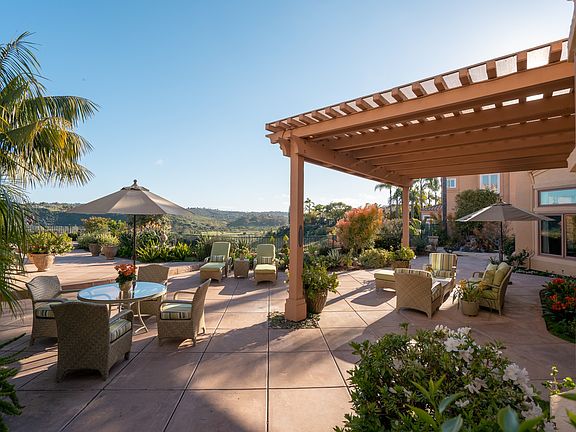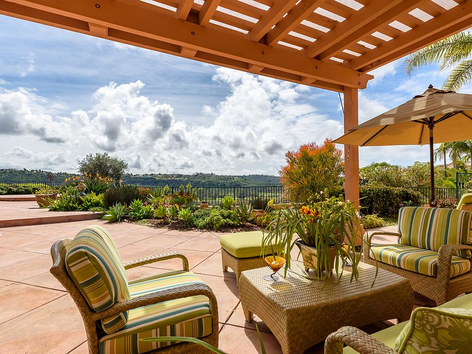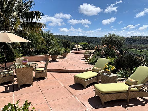Sweeping Southerly Views from one of the largest home-sites, perfectly located between the beaches of Del Mar and the countryside of Rancho Santa Fe, yet four minutes to the freeway. An enormous patio w/custom spa, waterfall and lush gardens offers a resort lifestyle 12 months of the year. Remodeled and updated using the finest materials with a First-Floor Master Suite. Designer kitchen, breakfast nook and family room join together creating an inviting and comfortable space. A temp.-controlled wine cellar stores 500 bottles. Private guest suite and two additional bedrooms on second level. 3 car garage, gated community, minutes to freeway, shopping, beaches. * South facing exposure, no rooftops, beautiful expansive view of the San Dieguito River valley, the greens of the Fairbanks Country Club, and hot air balloons from most rooms. * Green belt directly across the from the front of the home, which provides privacy and lovely natural view both front and back. Almost all other homes face other homes. * No road noise, quiet - "you can hear a pin drop". * One of the largest lots and landscaped backyards in the community, completely fenced with specimen plants, citrus trees, roses and herb garden and succulent garden. Copy this link for video tour https://youtu.be/oqo-SVAJC-Y