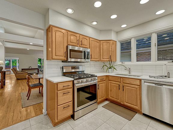 Welcome to this immaculate ranch-style home in the private Central Park community of Denver. Nestled on a quiet, tree-lined street, this residence offers 3 bedrooms, 3 bathrooms, and over 2, 300 finished square feet of beautifully maintained living space. Step inside to soaring vaulted ceilings and gleaming hardwood floors that flow through the main living areas. The spacious living room features a cozy gas fireplace and large windows that fill the home with natural light. A bright dining room with modern lighting opens seamlessly to the remodeled eat-in kitchen, complete with quartz countertops, stainless steel appliances, a breakfast nook, and plentiful cabinetry. The main-floor primary suite boasts direct access to the backyard sanctuary, a walk-in closet, and a luxurious 5-piece bath. A sunny office with French doors and backyard access offers flexible space for work or an additional bedroom. The finished basement expands the living area with two generous bedrooms, a full bath, laundry room with utility sink, and a versatile family/game room option. Outdoor living is exceptional with a large private deck surrounded by low-maintenance landscaping, evergreens, and perennials with drip irrigation. The home also offers ample storage with a lighted crawl space, attic access, and an attached 2-car garage. Updates include a stone-coated metal roof, newer furnace, water heater, and central A/C. Enjoy the convenience of being close to I-25, light rail, shopping, dining, parks, and trails while savoring the privacy of this 33-home enclave with beautifully maintained common areas.