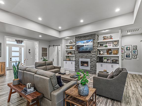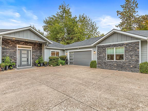 Nestled privately on an oversized lot, this thoughtfully designed contemporary single story is a custom dream home. Carefully curated at every turn; from a striking mix of clean lines & effortless living to upper end amenities. Beautiful entry into light filled great room from abundant windows & French-doors. Sophisticated great room is warmed by gas fireplace & built ins. All complimented by porcelain wood floors. Modern kitchen anchors the center of the home for ease of living. Large limestone island, farm sink & picture window, pantry & built in desk. Gourmet appliances include double ovens, gas range, 2 beverage drawers & fridge. Elegant dining w/built in hutch & wine fridge. Primary suite w/French doors, tiled shower & soaking tub plus dual closets. 2 additional bedrooms & full bath. Mudroom leads to powder room & laundry. 2 oversized garages for 4 cars & half bath. Backyard oasis w/3 patios & turf dog run off garage. Backs to city owned green space. All secure w/gated access.