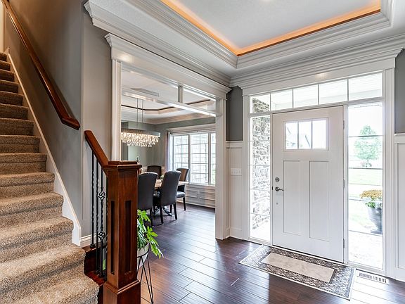 Welcome to the stunning split floor plan home situated in Hawthorne Park Estates on a serene half acreage. This thoughtfully designed home offers a perfect blend of modern elegance and comfortable living. As you step inside, you will immediately notice the spaciousness, impeccable craftsmanship and abundance of natural light. The open concept, main level, boasts a seamless flow between the different living areas, creating a harmonious space for both entertaining and everyday living. The heart of this home is the gourmet kitchen adorned with gorgeous quartz countertops, custom maple cabinets, top-of-the-line appliances and an expansive island that’s perfect for preparing family meals or hosting social gatherings. The extra-large walk-in pantry is not only great for storage, but the convenience of its own entrance from the garage. The kitchen seamlessly transitions to the formal dining room allowing for effortless enjoyment of delicious meals and heartwarming conversations with loved ones. The split-level plan allows for maximum privacy, with the luxurious primary bedroom occupying its own wing and its own access to the patio. Featuring a spa like ensuite bathroom, which contains a large walk-in tile shower, double vanity, dual walk-in closets. This tranquil retreat is the perfect place to unwind after a long day. On the upper level, 3 additional bedrooms, with one bedroom offering its own private bath and the other two share a Jack and Jill. Descending downstairs to the beautifully finished basement offers endless possibilities for recreation or relaxation. Whether it’s a home theater, a game room, or a personal gym, this versatile space caters to your unique lifestyle needs. The spacious and secluded fifth bedroom offers limitless potential. Step outside onto your covered deck into your own private oasis, where an inviting heated, lighted in-ground Treadway pool awaits with a diving board, basketball hoop and 3 deck jets that form shimmering arcs of water from the patio into the pool. Surrounded by ample patio space, this backyard sanctuary is an idyllic setting for hosting poolside gatherings or simply enjoy a refreshing swim on warm summer days. Impressive features of this property include an oversized 4 1/2 car garage, alarm built in surround sound (HEOS) in the house, including garage and back deck irrigation system and ample storage throughout. Don’t miss out on the chance to call this exquisite home your own.