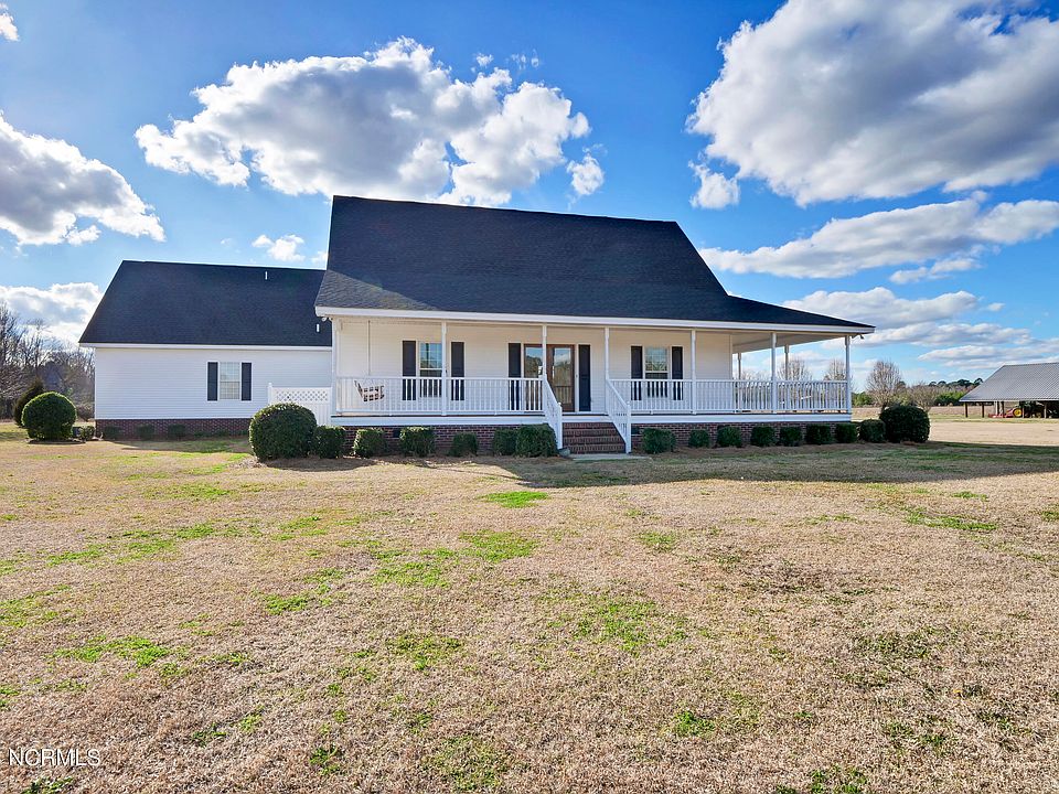Charming Farmhouse with Modern Upgrades. Welcome to a slice of countryside paradise! Nestled on a historic farmstead, this property boasts a blend of vintage charm and contemporary comfort. Situated on 2 +/- acres, this property offers the serenity of rural living coupled with convenient modern amenities. Between 1947 and 1962, this farm operated as both a dairy farm and a tobacco farm, reflecting the rich agricultural heritage of the region. As you approach along the asphalt driveway, your attention is drawn to a spacious concrete landing nestled beneath the shade of the carport. The sturdy concrete landing offers a stable foundation for your vehicles, while the shelter of the carport provides protection from the elements, ensuring your arrivals and departures are met with convenience and peace of mind. Step inside the main house that was built in 1998 and be greeted by timeless, red oak hardwood floors that exude warmth and character. The kitchen features custom cabinets, a tile backsplash, laminate countertops, and an electric cooktop. The adjacent dining area showcases elegant chair rail detailing, perfect for hosting intimate gatherings. Laundry area has brand new lvp flooring. Property comes fully furnished minus items marked with green tape. The downstairs includes a gas heater in the living room for cozy evenings. The master bedroom, conveniently located on the main level, offers a spacious walk-in closet and an ensuite bathroom with a shower-tub combo. Upstairs, discover an additional bedroom with ample closet space and ensuite bathroom. Additional Features include vaulted ceilings offering an abundance of natural light. Relax on the extra-wide semi wrap-around porch, complete with wood railings and decking, ideal for enjoying tranquil views of sunrise and sunsets. Please note, although photo'd in the aerials, no outside buildings/barns convey with the property.