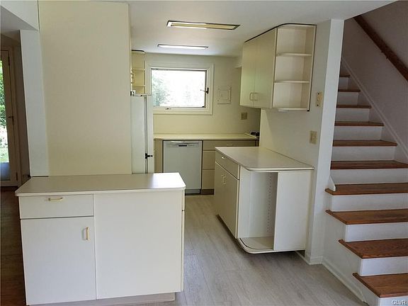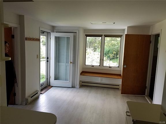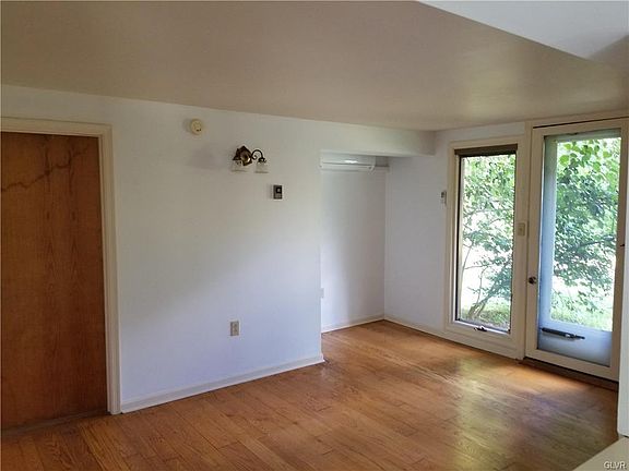 One of 3 units in a 1960's-era house set far back from Route 212 on 14 bucolic acres. This listing is a 2-story, 2-bedroom and 2-bathroom unit, with fully equipped kitchen, living room, dining area, and upstairs great/recreation room with built-in cabinetry/shelving. One bedroom and adjoining bathroom also on each floor. There are hardwoods throughout, except for new laminate flooring in the kitchen/dining area, and ceramic tile in the bathrooms. The views of surrounding farmland add to the peace and quiet of this location, only minutes to shopping and other conveniences in nearby Hellertown. Commuters will love the proximity to NJ over the Riegelsville bridge, & the easy access to other destinations in the Lehigh Valley & upper Bucks County. NOTE: Electricity, water, and sewer are all included in rent. Tenant is responsible only for telephone/cable/internet, trash, propane. Absolutely no pets will be considered or allowed, and no smoking. A great opportunity! (No sign, BCAR Supra)