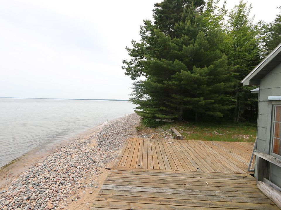 Two bedroom one bath cottage style home on Lake Superior with 120 feet of Waterfront!!! Natural gas heat and relaxing fireplace to take off the chill. Very deep lot with beautiful Lake Superior at your deck where you can enjoy beautiful sunsets, fishing and boating. Close to the Bay Mills Casino for entertainment or you can just relax and enjoy the scenery and waterfront living. Priced to enjoy for now and if you really like the spot (and who wouldn't) you can remove the cottage and rebuild. This cottage has a very large lot with natural gas!