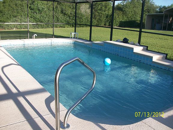 As your walking into this Fabulous 4 Br.,3 Bath, 2521 Sq. Ft., 2 car garage you will notice the welcome feel of the wide foyer, vaulted ceiling with an open floor plan perfect for effortless entertaining with the formal dining & living room. While the Great room & kitchen (24"cabinets),provide you with a lovely view of the screen in pool area approx.888sq.ft. with a heated pool 14X28, & a covered lanai approx.226sq.ft. perfect for your outside entertaining. Rain or Shine!. You can also enjoy the pool view from the kitchen eat-in breakfast bar or the breakfast room. You will have a WOW when you see this private master suite with a Hugh walk in shower, with two shower heads. You will enjoy his & her sink and the oversize walk in closet and a separate linen closet. Your master suite has pool access & view. Your guest will enjoy the private bath & access to pool. Your family & guest will enjoy the spacious home.! All bedrooms & great room have nice carpet. Tile in kitchen, bathrooms, & laundry room. Formal area has wood/par. Plenty of room for parking with the detached 3 car carport. A new A/C installed 2013. Alarm system. This clean & neat home is convenient to shopping & restaurants. Come live the Florida dream.