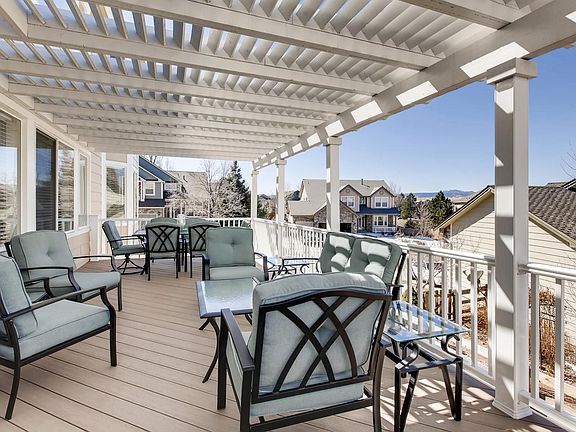 Stunning home with gorgeous outdoor entertaining space located on a large, corner lot in The Meadows. A Sullivan II model, this spacious 6-bedroom home is filled with natural light. The main floor boasts an open floor plan comprised of two living spaces, a formal dining room, a main-floor bedroom, kitchen and breakfast nook. From the main floor, step out directly onto the expansive Trex deck with breathtaking sights. Enjoy the mountain views while you entertain in this home's beautiful outdoor space, including an upper deck, lower covered patio and additional custom paver patio. Relax in the remodeled master bath complete with a frameless glass shower, jetted tub, dual sinks, and granite countertops. Over 1,300 square feet of finished space in the walkout basement, for gatherings, guests, or a private office. Excellent location near entertainment, schools, parks, shopping, golf courses and more.