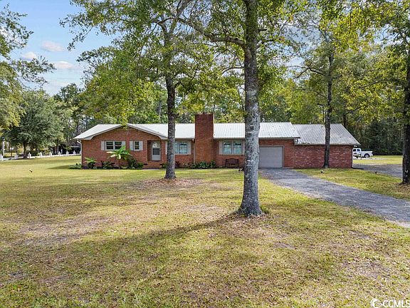 A homesteader's dream, 1.92 acres with no HOA! Country living at its best; this all-brick 3 bedroom, 2 bath home has a fantastic open floor plan and a new metal roof installed just months ago! Enter the home to a spacious great room with a beautiful wood burning fireplace. The open kitchen is perfect for entertaining with all stainless steel appliances and plenty of counter and cabinet space. The dining area sits right off the kitchen with french doors that lead to the sun room. There is a spacious laundry room with a counter area, sink and cabinets. This home has all new windows and 4-ton HVAC installed in 2021! An outdoor deck overlooks the backyard with several varieties of established fruit trees(pear, fig and persimmon), as well as a pecan tree, green house, garden shed and chicken coop. A 2 car garage with a front and side entrance as well as a large utility closet is perfect for tools and gardening storage. Only a short drive to historic downtown Conway and the River Walk, and only 30 minutes from Myrtle Beach!