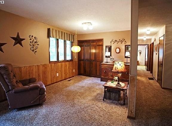 Custom built 1 level home with Wood Pella windows throughout, sunken living room with a fireplace, den/sitting room, solid wood closet doors, large indoor laundry room with sink, oversized two car garage with basement entrance for plenty of storage or wine cellar. This very clean, well maintained beauty sits in a private setting with walking trails throughout its 2.5 acres. Possible 4th bedroom easily configured.