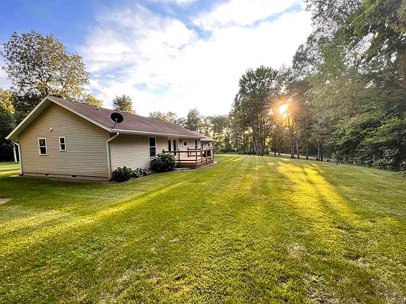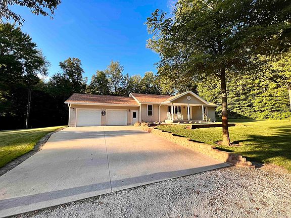 Offered for sale is a 1380 sq. ft. home sitting on a quiet gravel road. This home features 3 bedrooms, 2 full bathrooms, and an attached two car garage. Step into the home from the garage and you will notice your first bedroom as well as a full bathroom located just across the hallway. Down the hallway you will find the open concept kitchen, dining, and living area. In the kitchen you will find a breakfast bar which is perfect for sitting down and enjoying your morning breakfast. Walk out your dining room sliding doors and sit on the back porch and take in the scenic views this property has to offer. Located at the other end of the home you will find the two other bedrooms as well as the other full bathroom. Walk out your front door and you will notice across the driveway sits a small storage shed and a pole barn that offers a small garage/shop area as well as a guest quarters that could act as an office or a room for storage. Located at the south end of the property is 6+/- acres of wooded acreage that has a well-maintained trail system that provides easy access throughout the entire property. As you walk the trails you will notice the amount of deer sign that this property offers. There are deer trails running all throughout the woods! In the woods sits a small open area that would be a great spot for a small secluded food plot to bring the deer to you. This property has some great trail camera history as well as a great reputation for large deer running around the surrounding area. This property is connected to a lot of surrounding timber, not to mention, a steep hillside that runs the east side of the adjacent property that deer use as a main travel corridor. A home and property that offers this much does not come on the market often, so take advantage of this opportunity and come take a look!